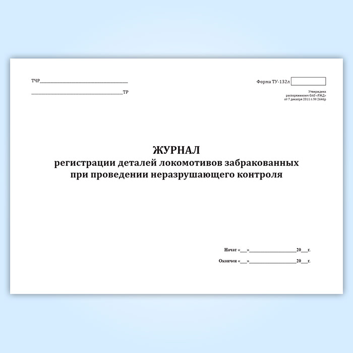 Журнал регистрации деталей локомотивов, забракованных при проведении неразрушающего контроля (форма ТУ-132л) в Щёлково купить