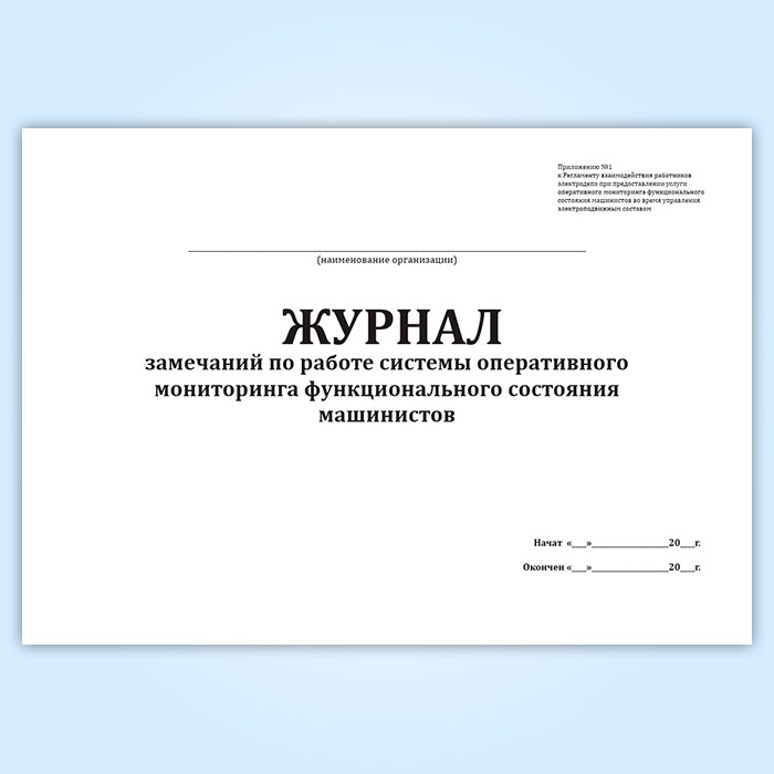 Журнал замечаний по работе системы оперативного мониторинга функционального состояния машинистов в Щёлково купить