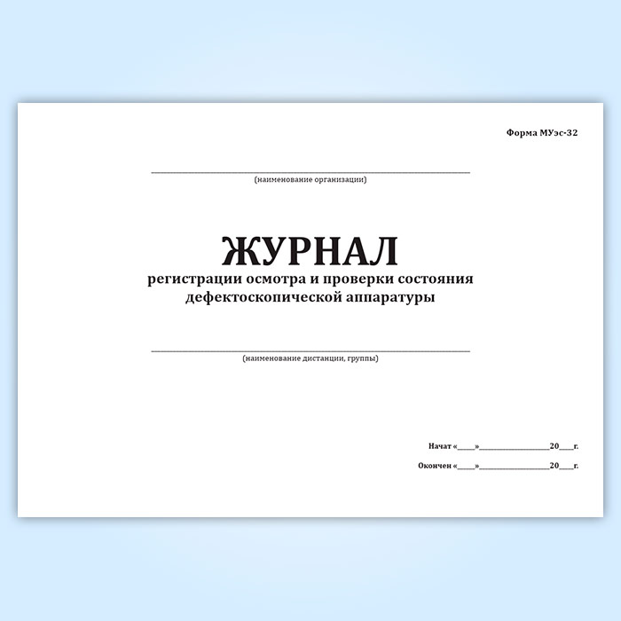 Журнал регистрации осмотра и проверки состояния дефектоскопической аппаратуры (форма МУэс-32) в Щёлково купить