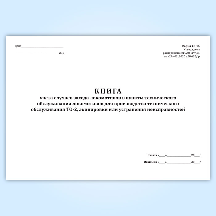 Книга учета случаев захода локомотивов в пункты технического обслуживания локомотивов для производства технического обслуживания ТО-2, экипировки или устранения неисправностей (форма ТУ-15) в Щёлково купить