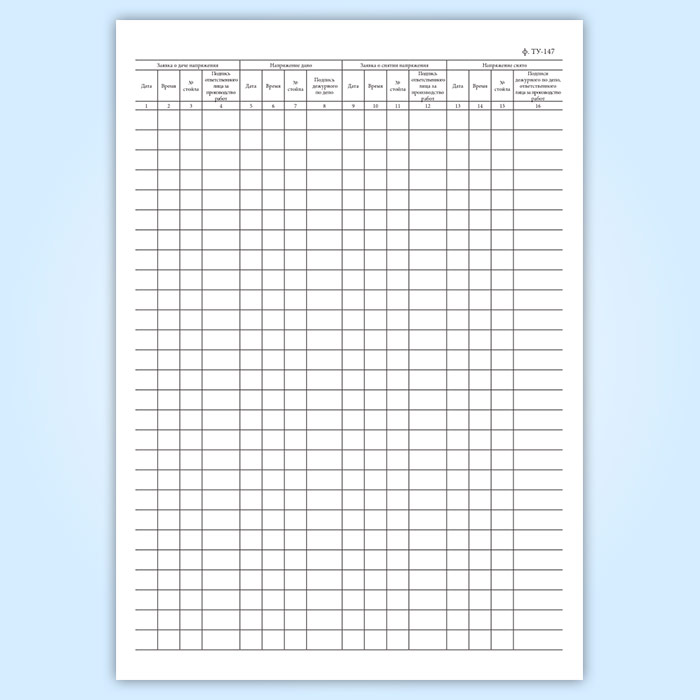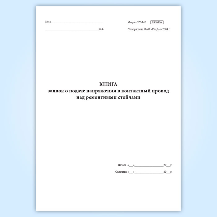Книга заявок о подаче напряжения в контактный провод над ремонтными стойлами (форма ТУ-147) в Щёлково купить
