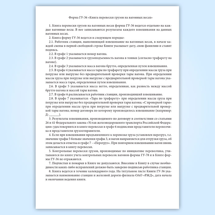 Книга перевески грузов на вагонных весах (форма ГУ-36) в Щёлково купить