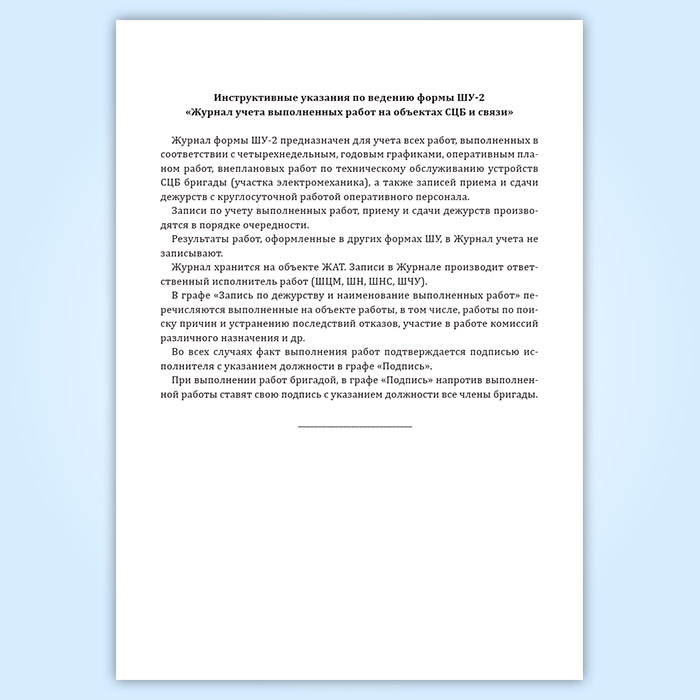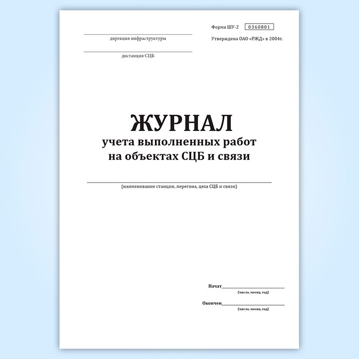 Журнал учета выполненных работ на объектах СЦБ и связи (форма Шу-2) в Щёлково купить