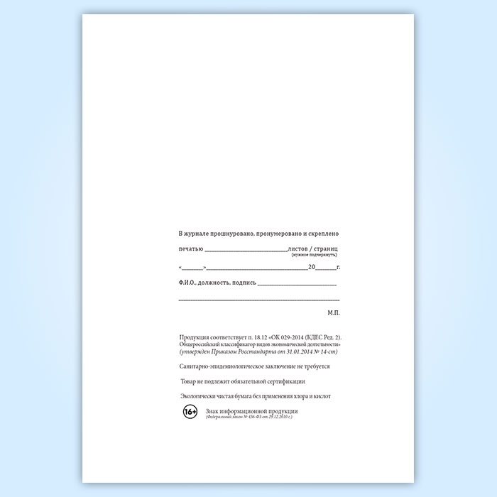 Вы получаете печатную продукцию прошнурованной и c местом для вашей печати в соответствии с действующими нормативными документами: