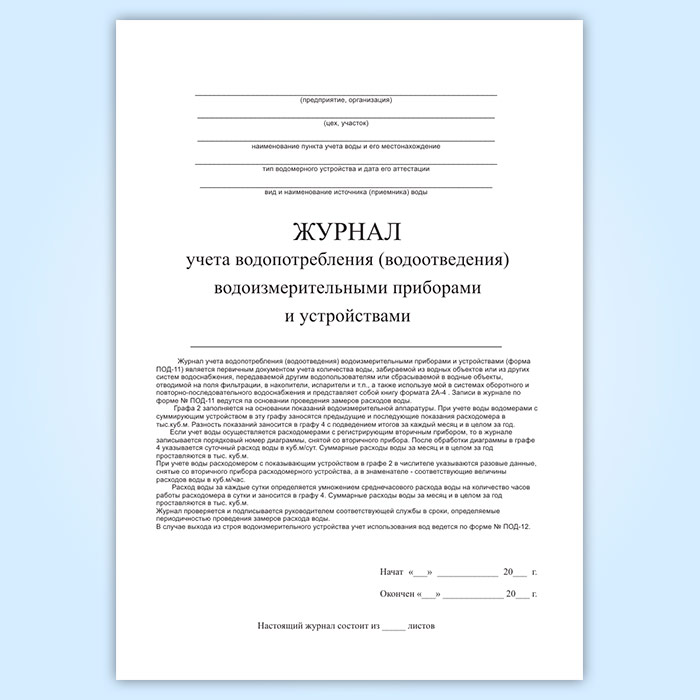 Журнал учета водопотребления (водоотведения) водоизмерительными приборами и устройствами (форма ПОД-11) в Щёлково купить