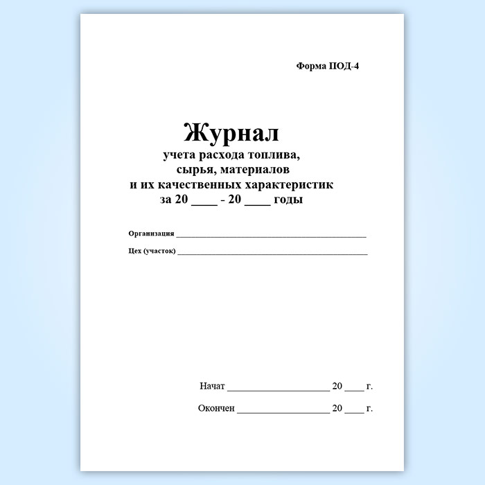 Журнал учета расхода топлива, сырья, материалов и их качественных характеристик (форма ПОД-4) в Щёлково купить