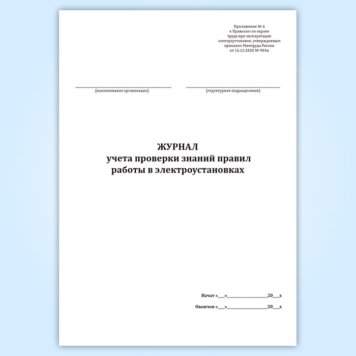 Журнал учета проверки знаний правил работы в электроустановках (Приложение 6) в Щёлково купить