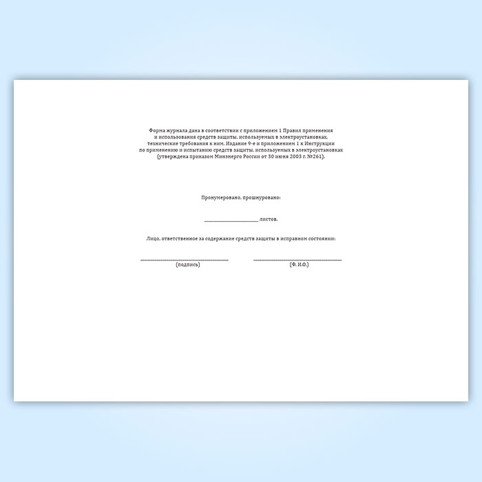 Журнал учета и содержания средств защиты (используемых в электроустановках) в Щёлково купить