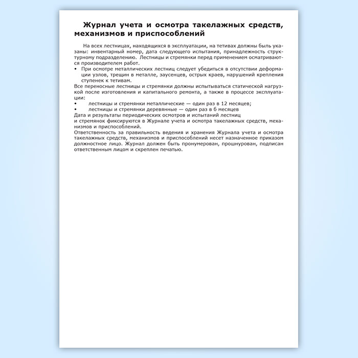 Журнал учета и осмотра такелажных средств, механизмов и приспособлений в Щёлково купить