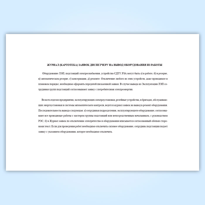 Журнал (картотека) заявок диспетчеру на вывод оборудования из работы в Щёлково купить