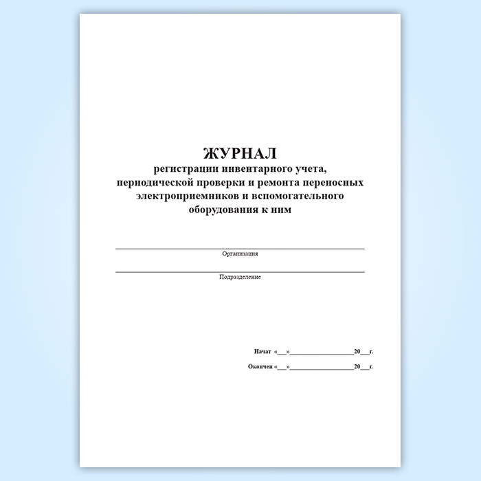 Журнал регистрации инвентарного учета, периодической проверки и ремонта переносных электроприемников и вспомогательного оборудования к ним в Щёлково купить