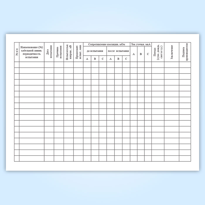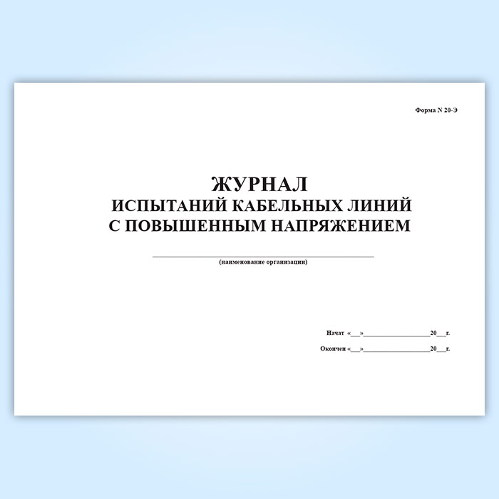 Журнал испытаний кабельных линий с повышенным напряжением (форма № 20-Э) в Щёлково купить