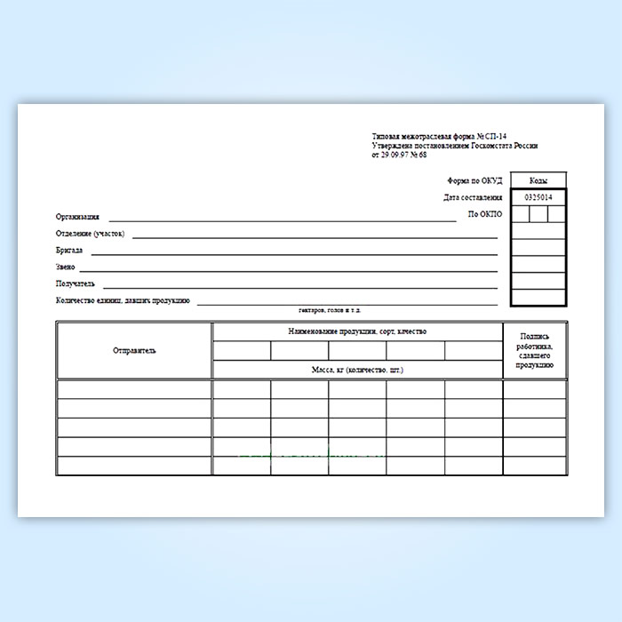 Дневник поступления сельскохозяйственной продукции (форма № СП-14) в Щёлково купить