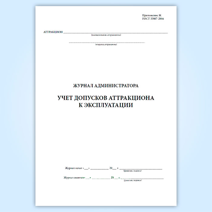 Журнал администратора. Учет допусков аттракциона к эксплуатации в Щёлково купить