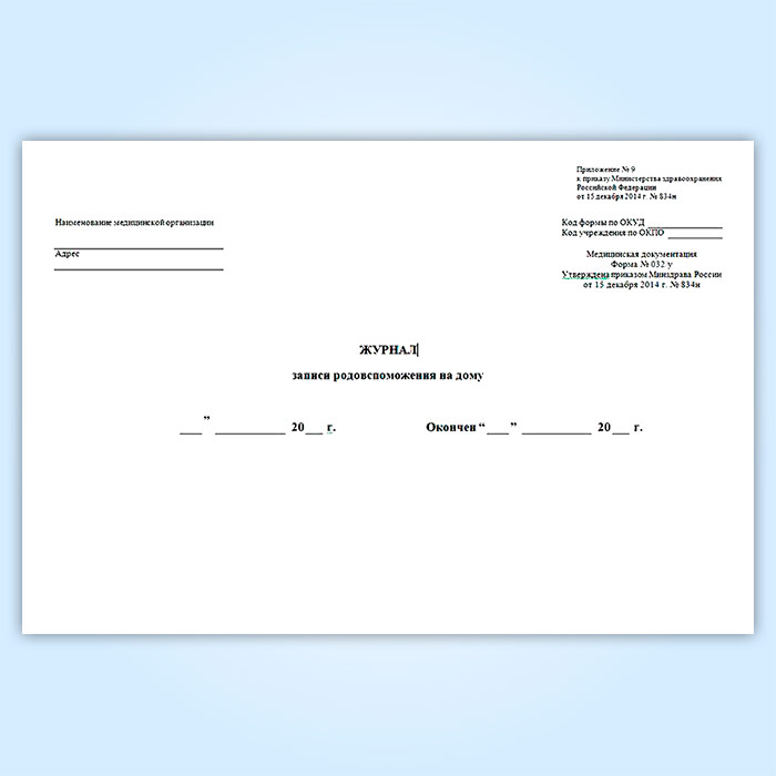Журнал записи родовспоможения на дому (форма 032/у) в Щёлково купить