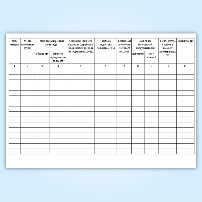 Журнал промеров толщины льда и определения грузоподъемности ледяного покрова в Щёлково купить