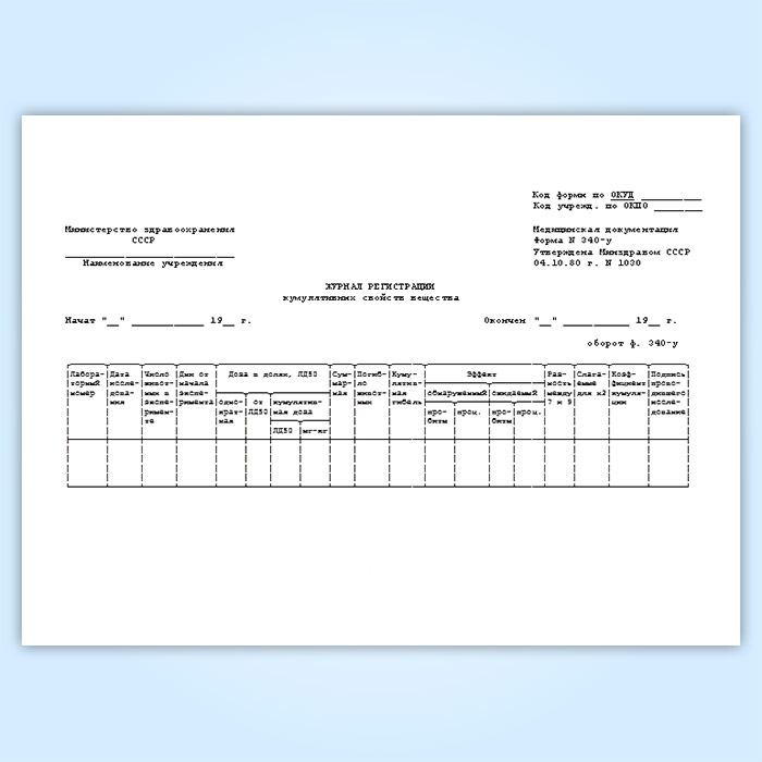 Журнал регистрации кумулятивных свойств вещества (форма № 340-у) в Щёлково купить