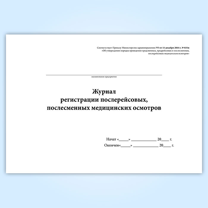 Журнал регистрации послерейсовых, послесменных медицинских осмотров в Щёлково купить