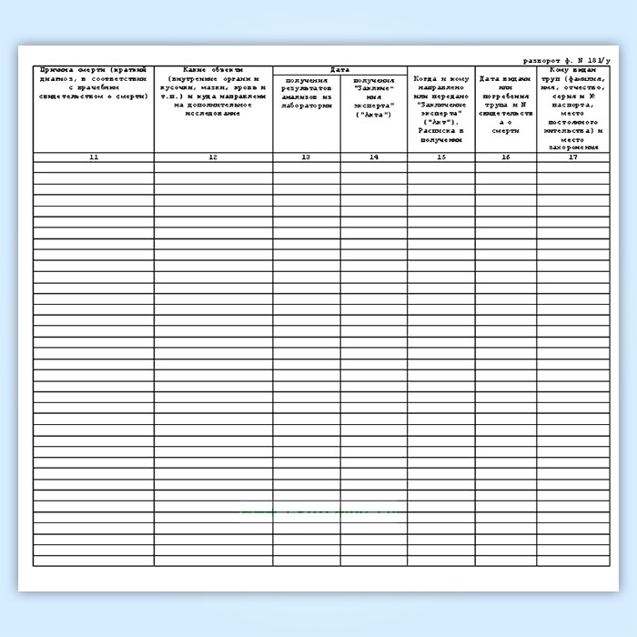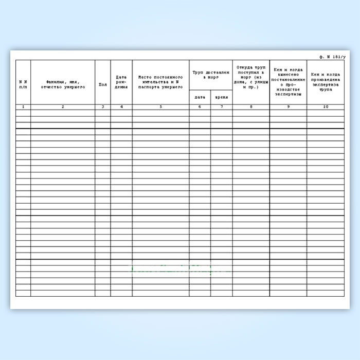 Журнал регистрации трупов в судебно-медицинском морге (форма 181у) в Щёлково купить