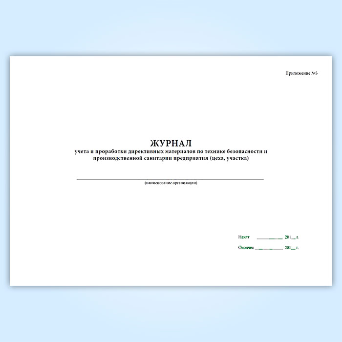 Журнал учета и проработки директивных материалов по технике безопасности и производственной санитарии предприятия (цеха, участка) в Щёлково купить