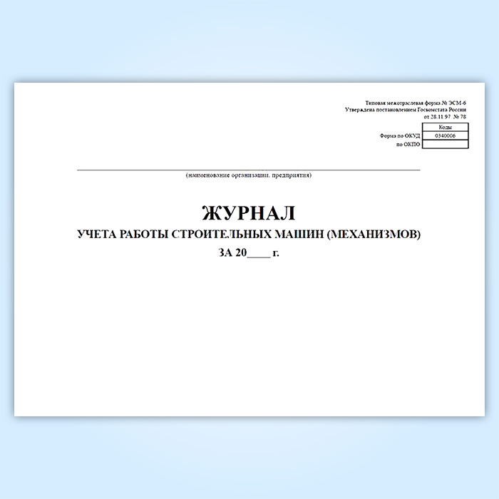 Журнал учета работы строительных машин (механизмов) (форма ЭСМ-6) в Щёлково купить