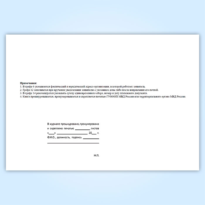 Вы получаете печатную продукцию прошнурованной и c местом для вашей печати в соответствии с действующими нормативными документами: