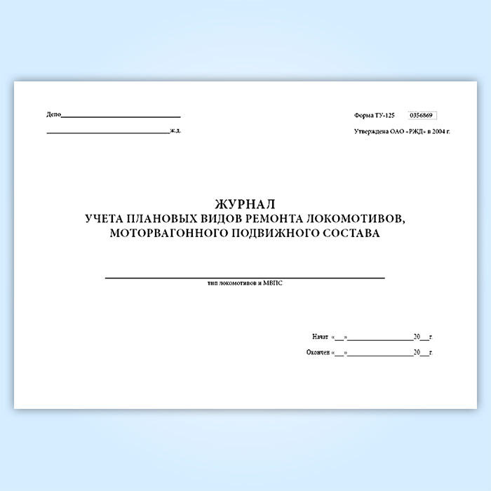 Книга учета плановых видов ремонта локомотивов, моторвагонного подвижного состава (форма ТУ-125) в Щёлково купить