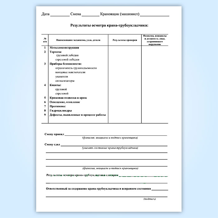 Вахтенный журнал крановщика (машиниста) крана-трубоукладчика в Щёлково купить
