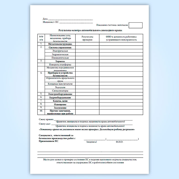 Вахтенный журнал машиниста автомобильного стрелового крана в Щёлково купить