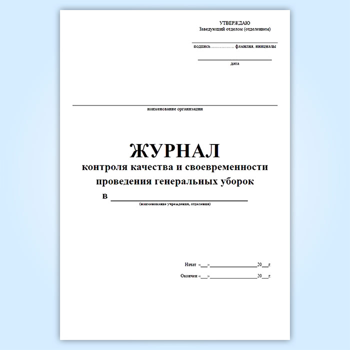 Журнал контроля качества и своевременности проведения генеральных уборок в Щёлково купить