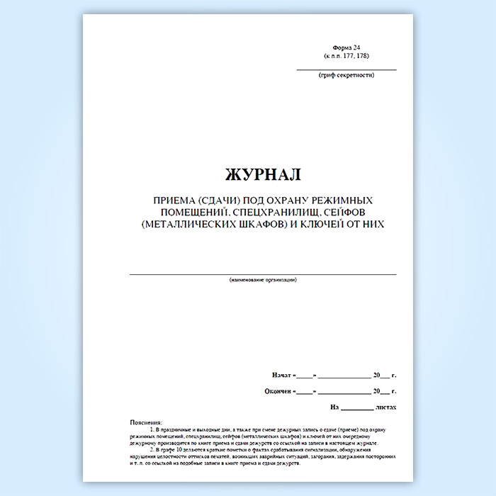 Журнал приема (сдачи) под охрану режимных помещений, спецхранилищ, сейфов (металлических шкафов) и ключей от них в Щёлково купить