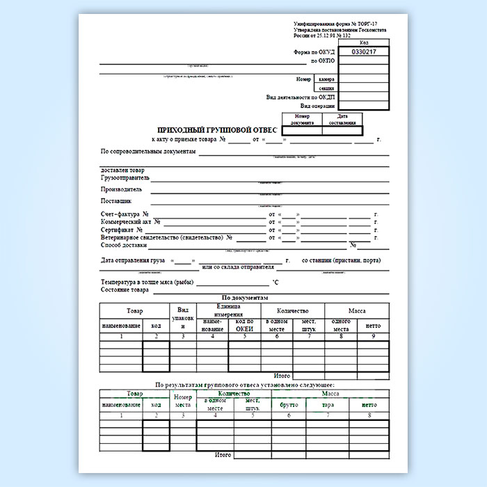 Журнал приходный групповой отвес (форма № ТОРГ-17) в Щёлково купить