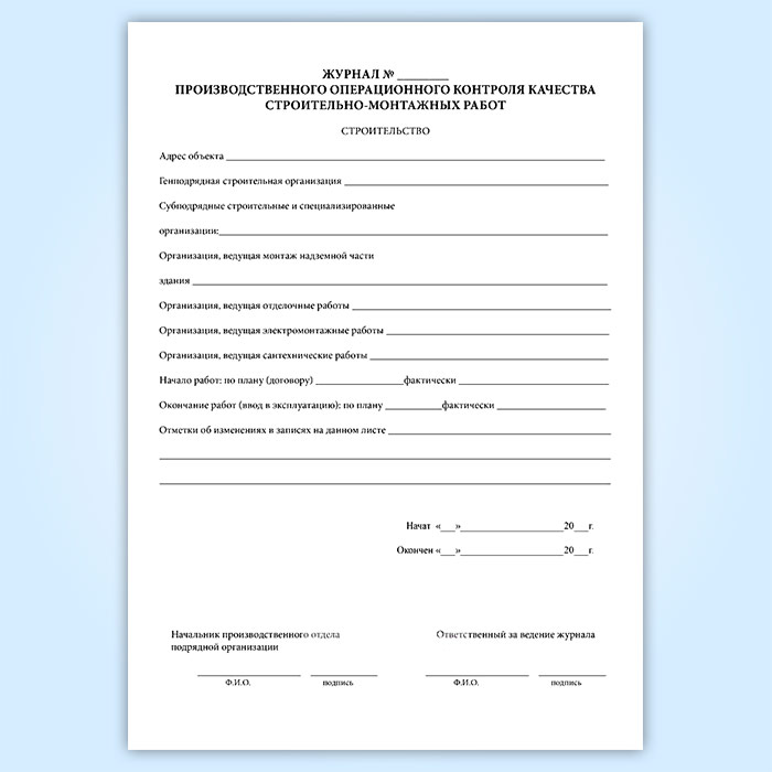 Журнал производственного операционного контроля качества строительно-монтажных работ в Щёлково купить