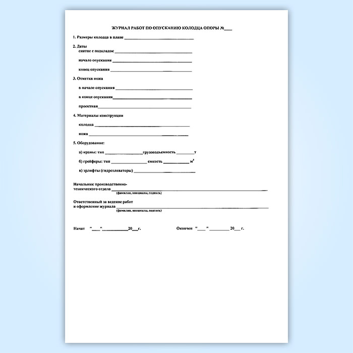 Журнал работ по опусканию колодца опоры в Щёлково купить