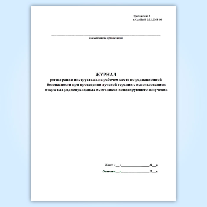 Журнал регистрации инструктажа на рабочем месте по радиационной безопасности при проведении лучевой терапии с использованием открытых радионуклиидных источников ионизирующего излучения в Щёлково купить