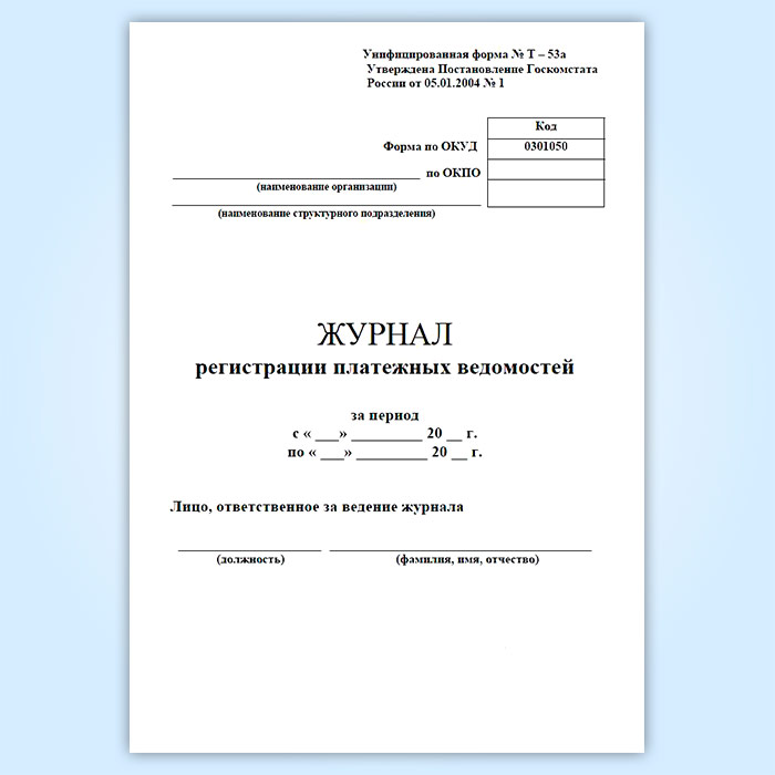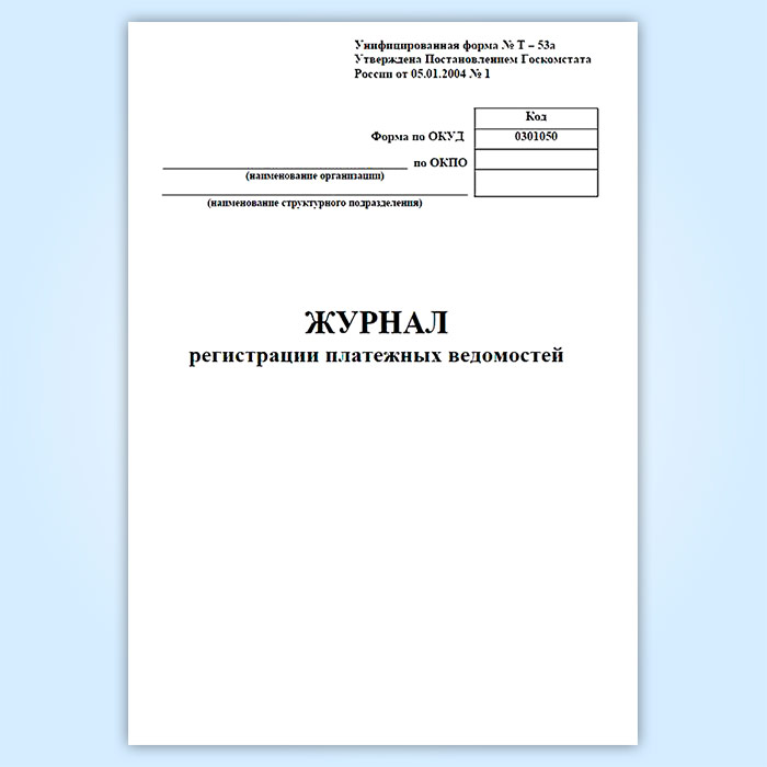 Журнал регистрации платежных ведомостей (унифицированная форма № Т-53а, форма по ОКУД 0301050) в Щёлково купить