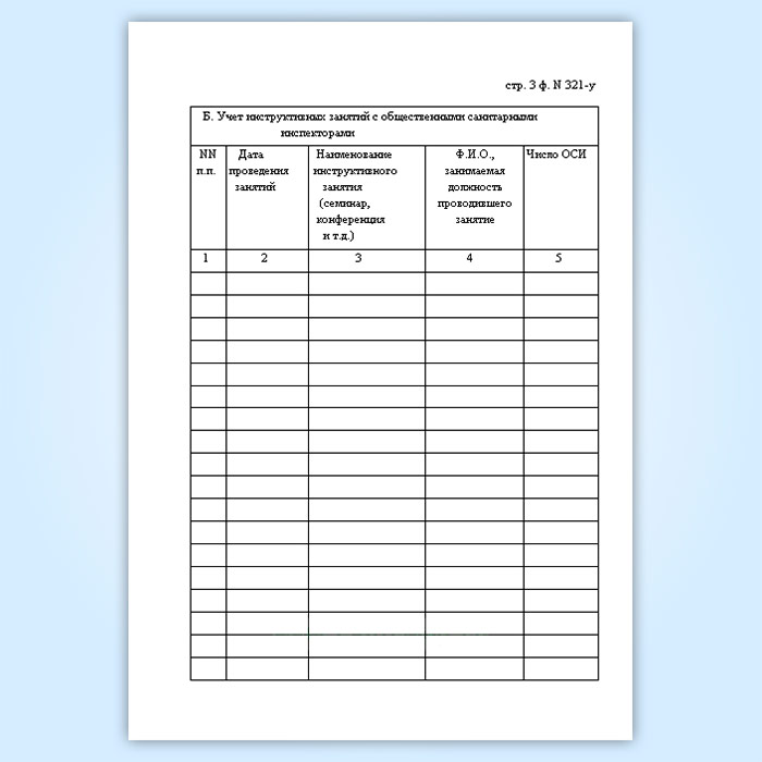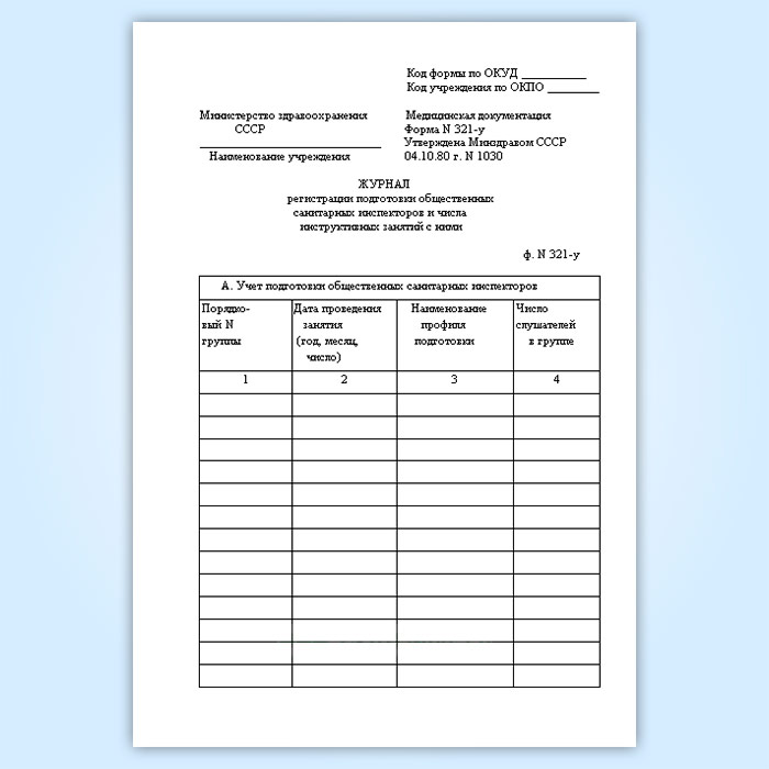 Журнал регистрации подготовки общественных санитарных инспекторов и числа инструктивных занятий с ними (форма № 321-у) в Щёлково купить