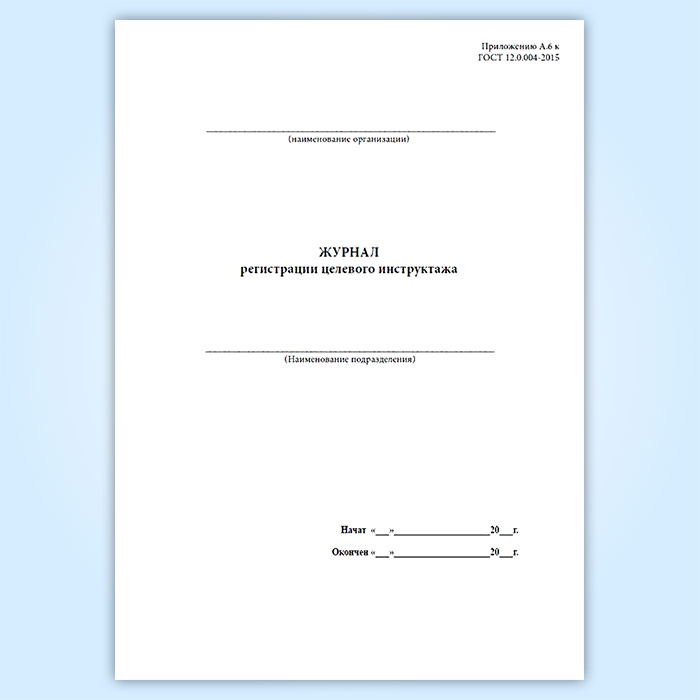 Журнал регистрации целевого инструктажа (ГОСТ 12.0.004-2015) в Щёлково купить
