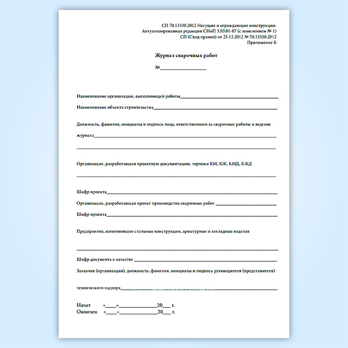Журнал сварочных работ (приложение к СП 70.13330.2012) в Щёлково купить