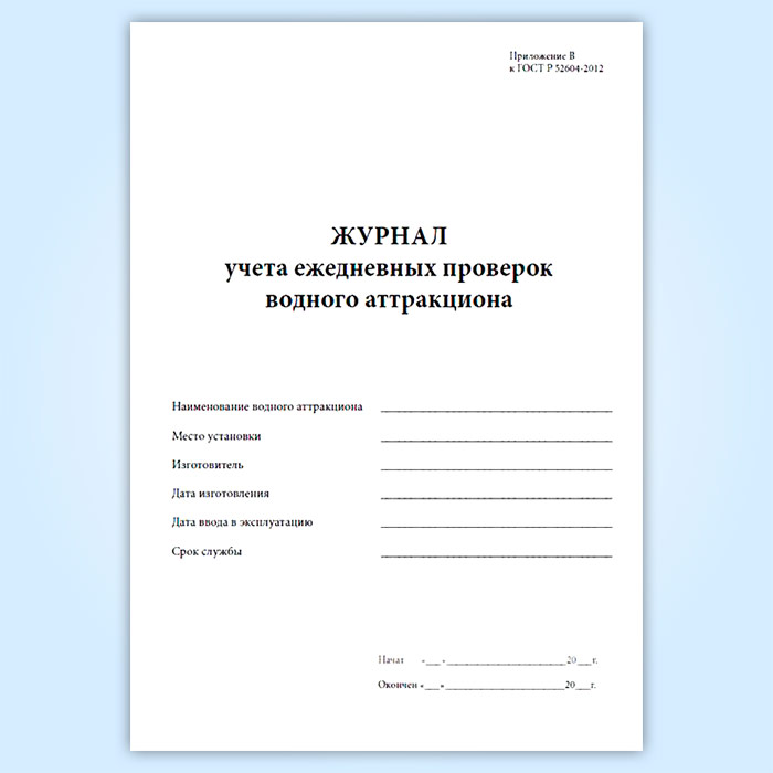 Журнал учета ежедневных проверок водного аттракциона в Щёлково купить