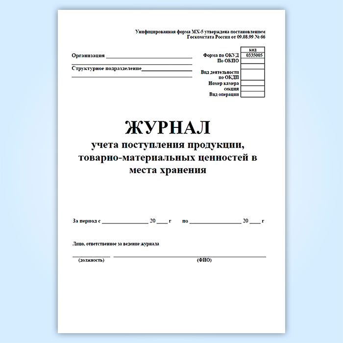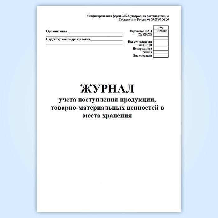 Журнал учета поступления продукции, товарно-материальных ценностей в места хранения (форма МХ-5) в Щёлково купить