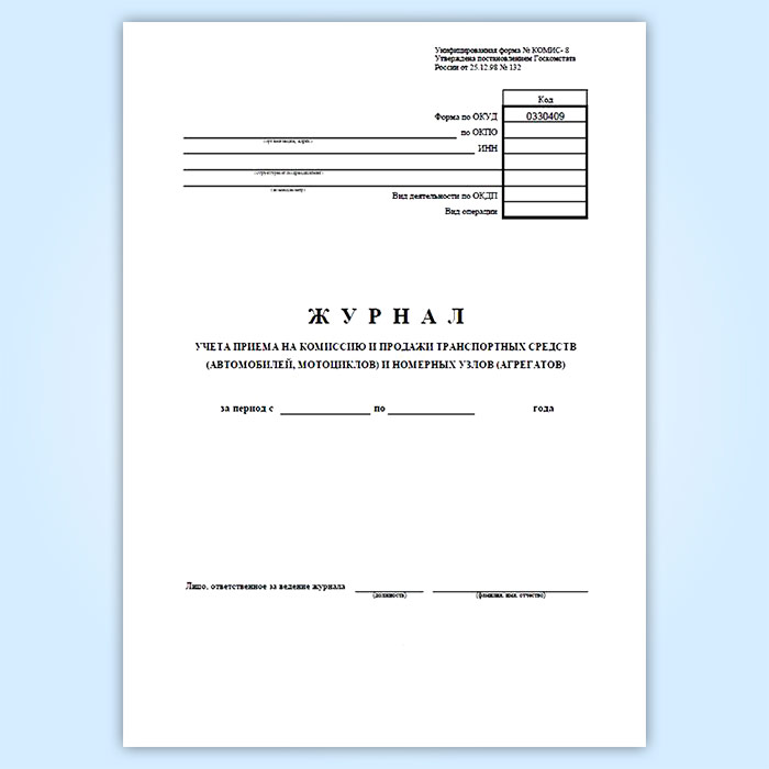 Журнал учета приема на комиссию и продажи транспортных средств (автомобилей, мотоциклов) и номерных узлов (агрегатов) (форма № КОМИС-8) в Щёлково купить