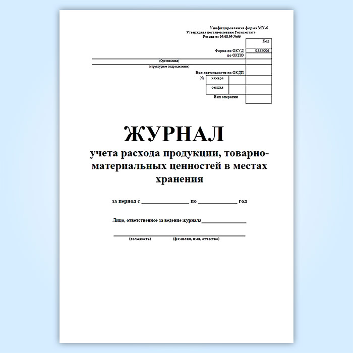 Журнал учета расхода продукции, товарно-материальных ценностей в местах хранения (форма МХ-6) в Щёлково купить