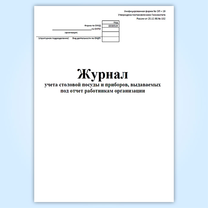 Журнал учета столовой посуды и приборов, выдаваемых под отчет работникам организации (форма № ОП-19) в Щёлково купить