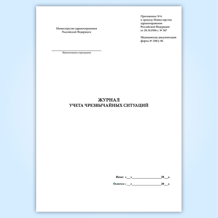 Журнал чрезвычайных ситуаций (форма № 168/у-96) в Щёлково купить