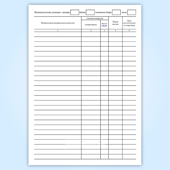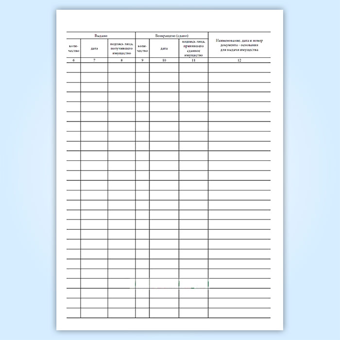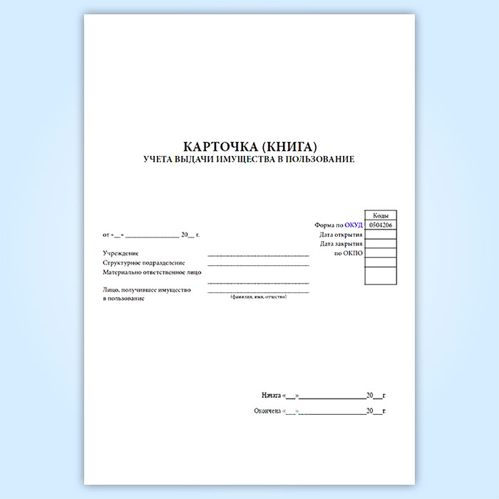 Карточка (книга) учета выдачи имущества в пользование (форма по ОКУД 0504206) в Щёлково купить