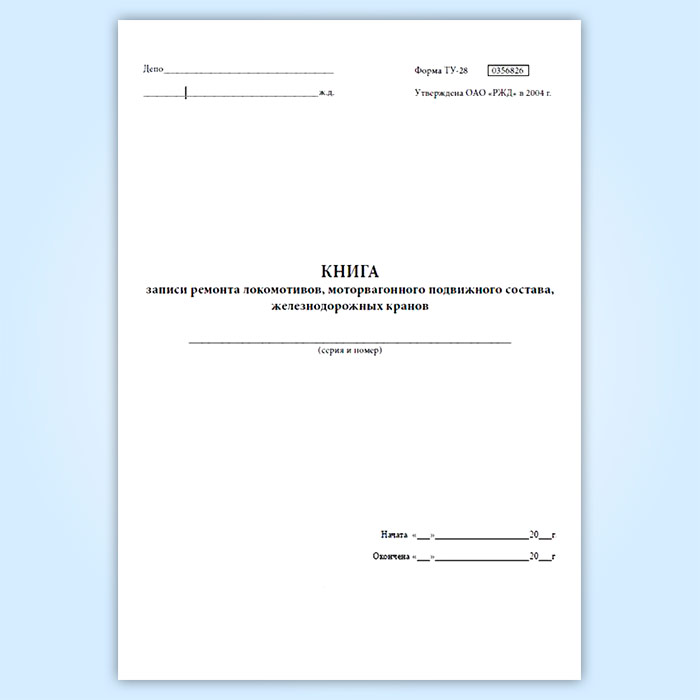 Книга записи ремонта локомотивов, моторвагонного подвижного состава железнодорожных кранов (ТУ-28) в Щёлково купить