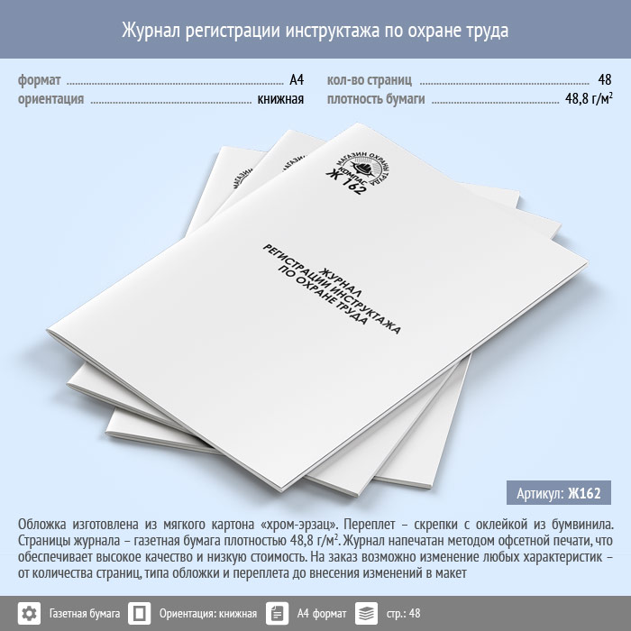 Журнал регистрации инструктажа по охране труда (48 стр., Ж162) в Щёлково купить