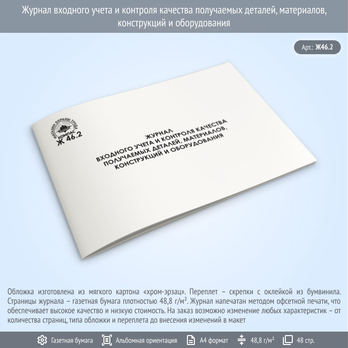 Журнал входного учета и контроля качества получаемых деталей, материалов, конструкций и оборудования (Ж46.2, 48 стр.) в Щёлково купить