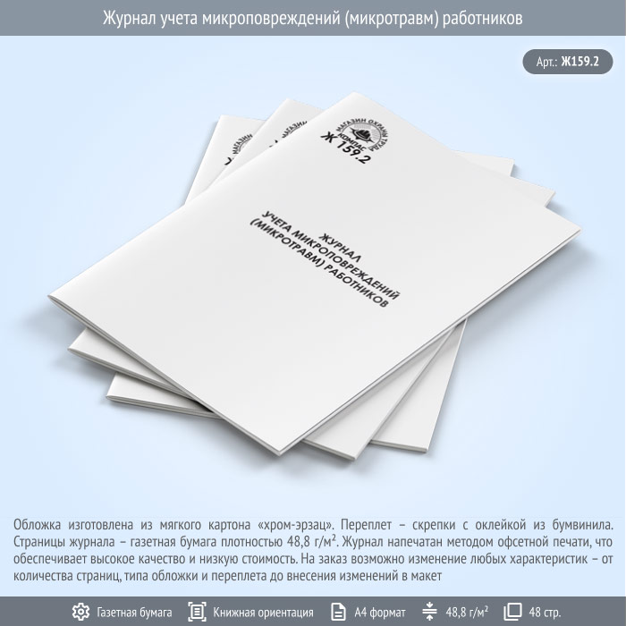 Журнал учета микроповреждений (микротравм) работников (48 стр., Ж159.2) в Щёлково купить